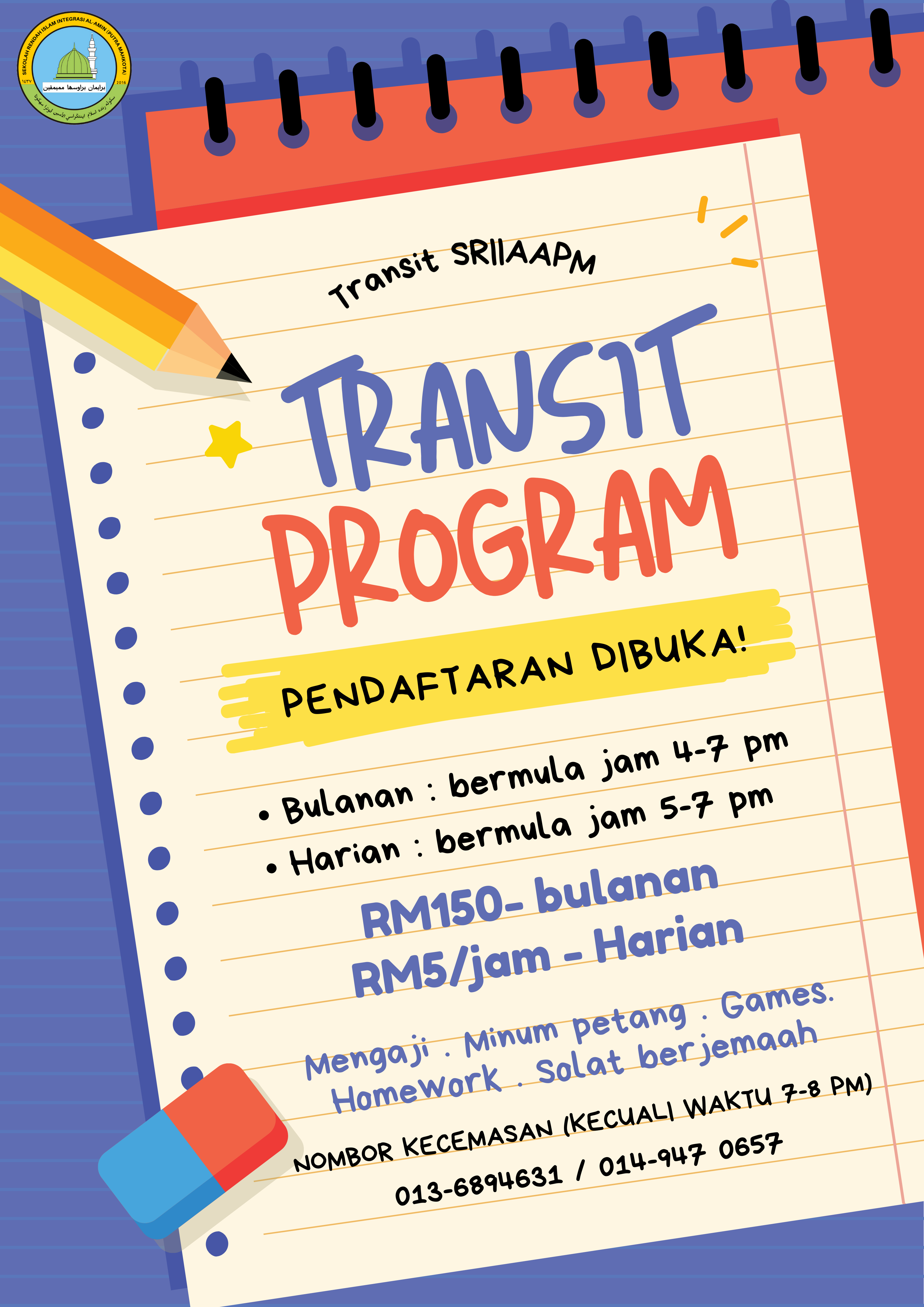 Program Transit Sekolah diwujudkan bagi membantu ibu bapa memastikan anak-anak berada dalam persekitaran yang selamat, terurus dan beradab selepas waktu sekolah.